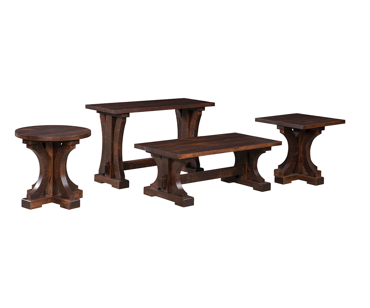 Dimensions: Sofa Table: 48”W x 18”D x 29”H Coffee Table: 48”W x 24”D x 18”H Round End Table: 24”W x 24”D x 24”H End Table: 24”W x 24”D x 24”H