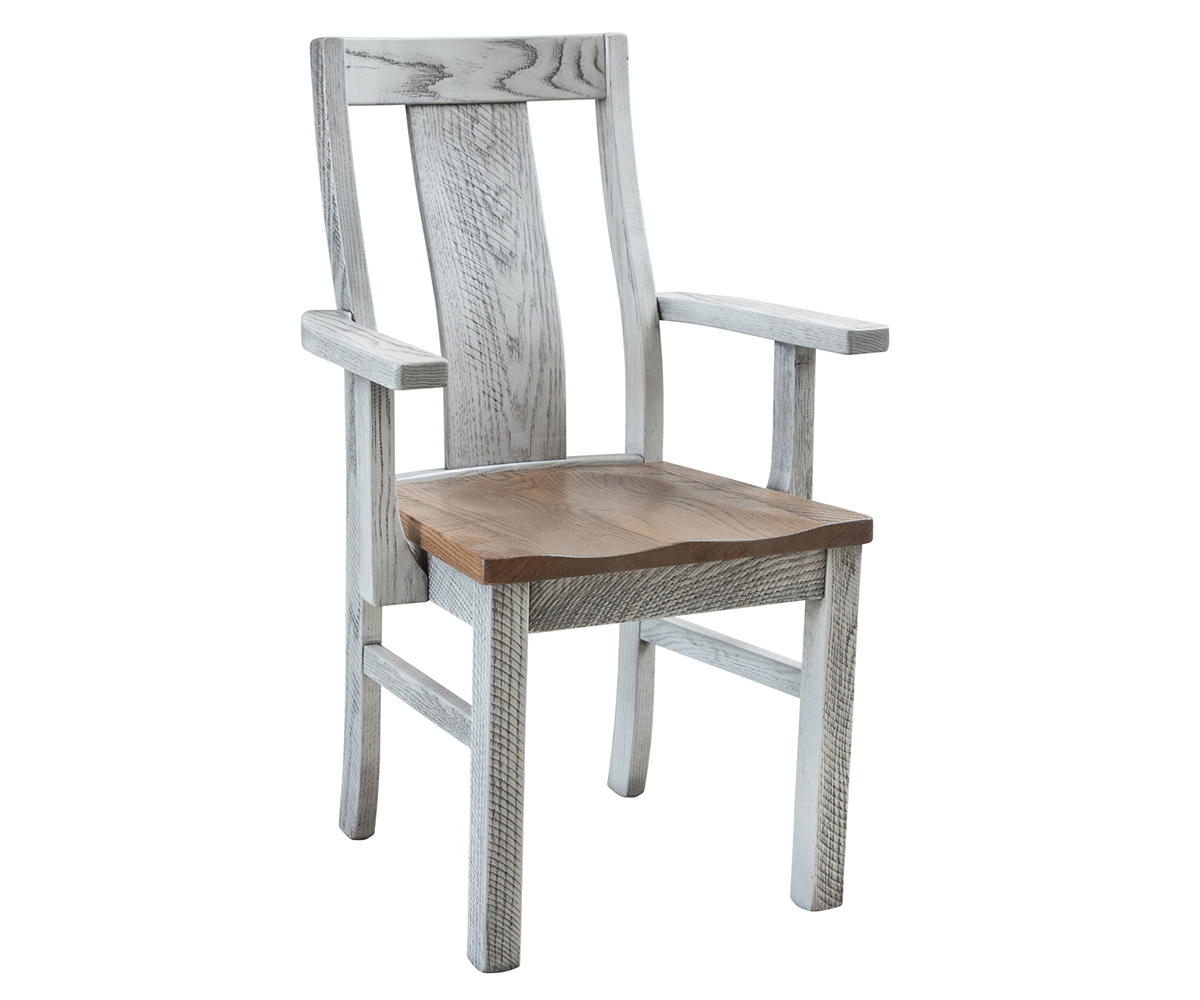 Shown With: Wood: Rough Sawn Oak Paint – Frame: White With Black Glaze Stain – Seat: Sandstone