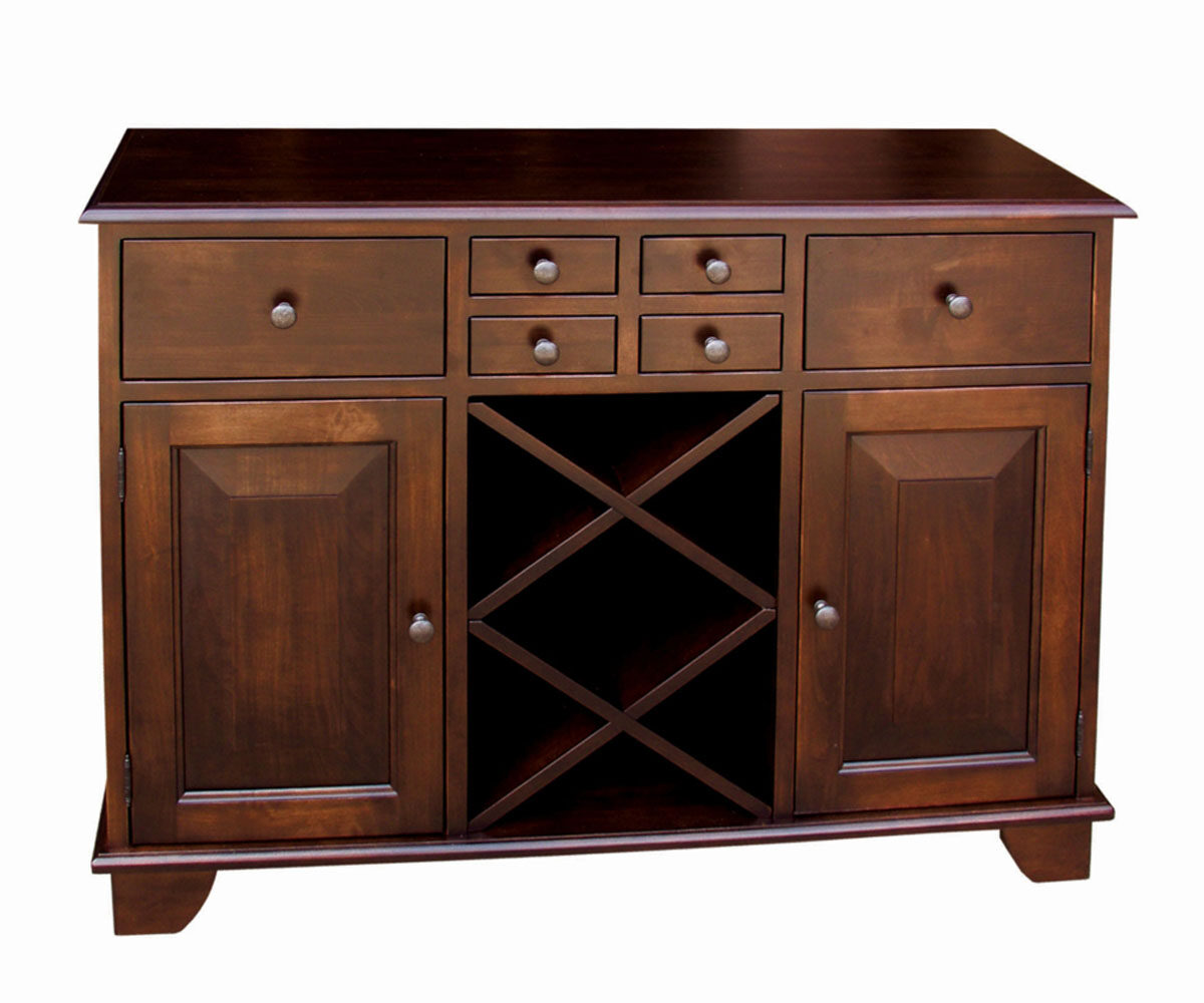 Features: • Dovetailed drawers • Full extension drawer slides • One adjustable shelf behind each door • Wine rack in the center