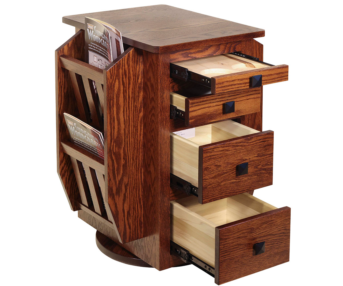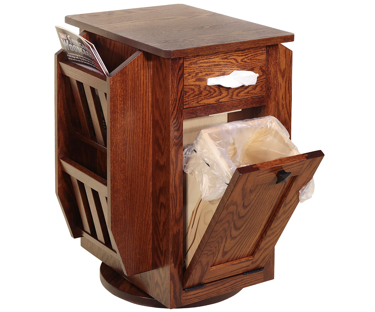 Features: • Dovetailed drawers • Pull out cupholder • Magazine racks • Tissue holder • Pull out trash bin