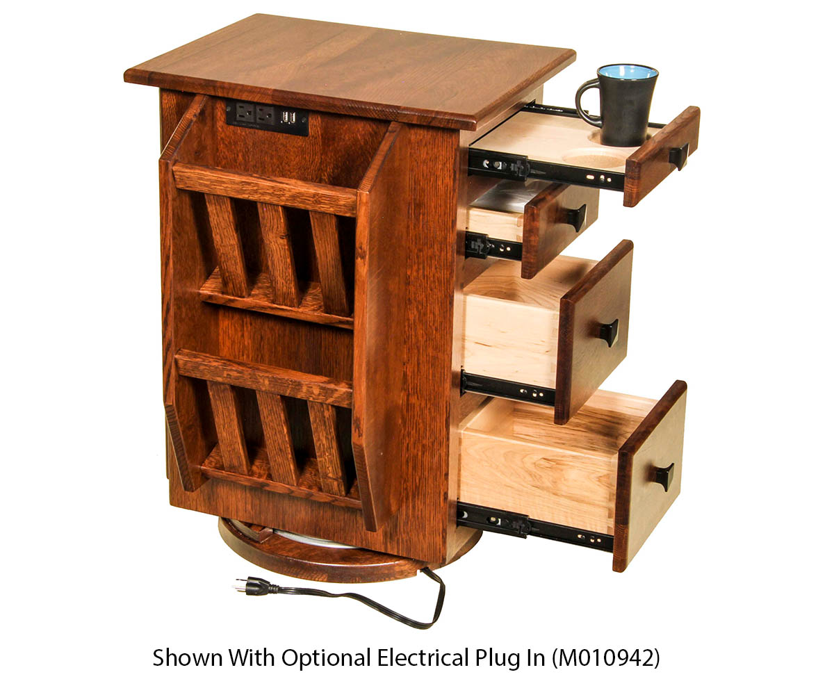 Features: • Dovetailed drawers • Pull out shelf • Magazine racks • Tissue holder • Pull out trash bin