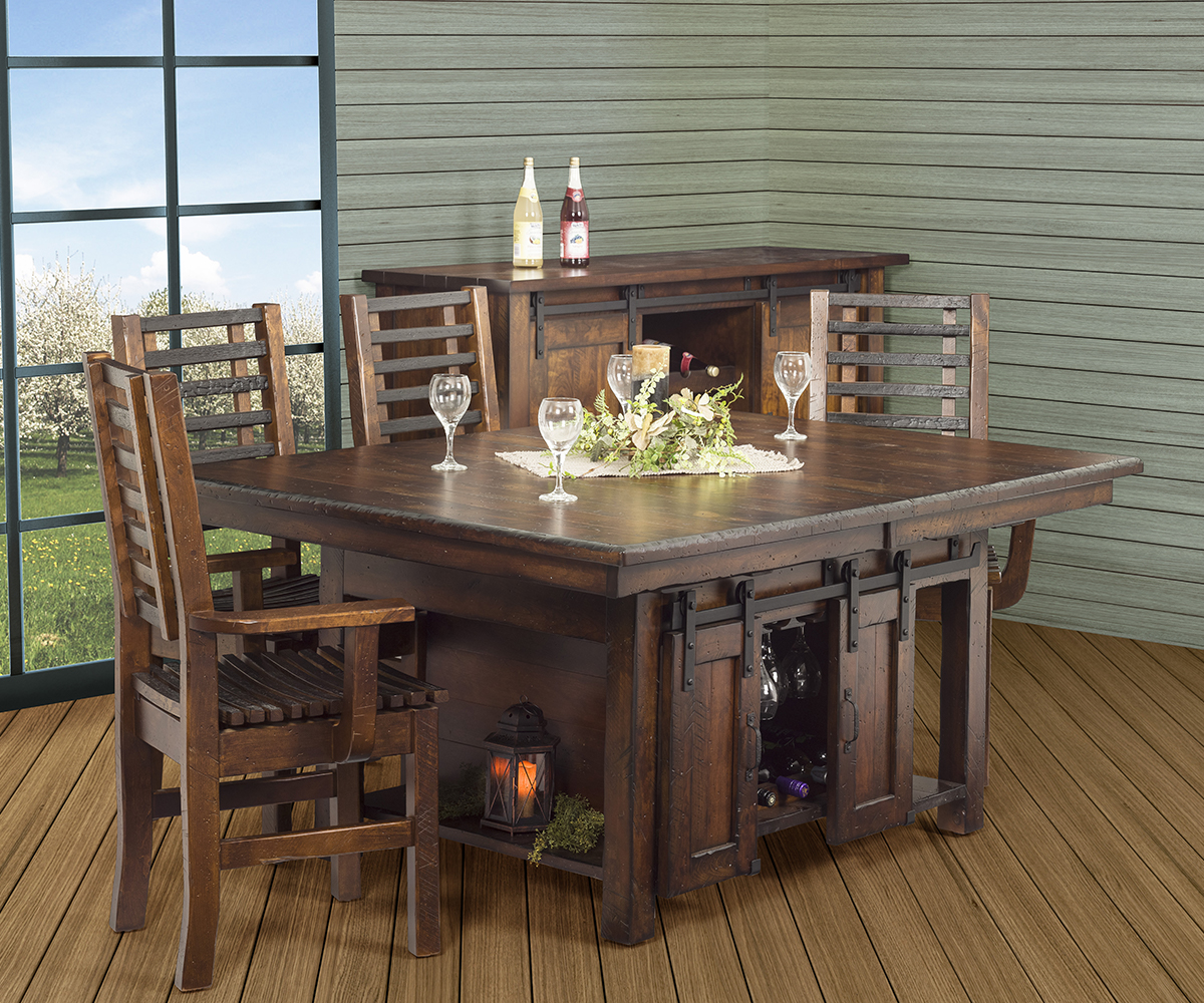 Table shown 48 x 66″ in rustic cherry with aged caramel stain.